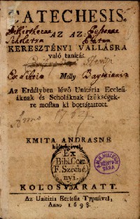 CímCatechesis, azaz keresztyéni vallásra való tanítás, mely az Erdélyben lévő unitária ecclesiáknak és scholáknak szükségekre mostan kibocsátatott Kmita Andrasne költségével