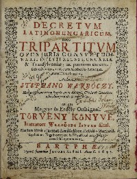 CímDecretum Latino-Hungaricum, sive Tripartitum opus iuris consuetudinarii inclyti regni Hungariae et Transylvaniae ac partium eidem subiectarum, una cum methodo articulorum diaetalium, autore Stephano Werböczy. Huc accesserunt etiam regulae iuris antiqui, civiles et canonicae, admodum perutiles et necessariae