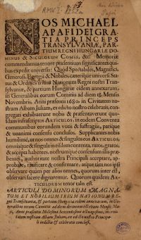 CímArticuli dominorum ... Transylvaniae ... in generalibus eorum comitiis ad diem 18. ... Maji anni ... 1680, in ... Albam Juliam ... indictis ... conclusi